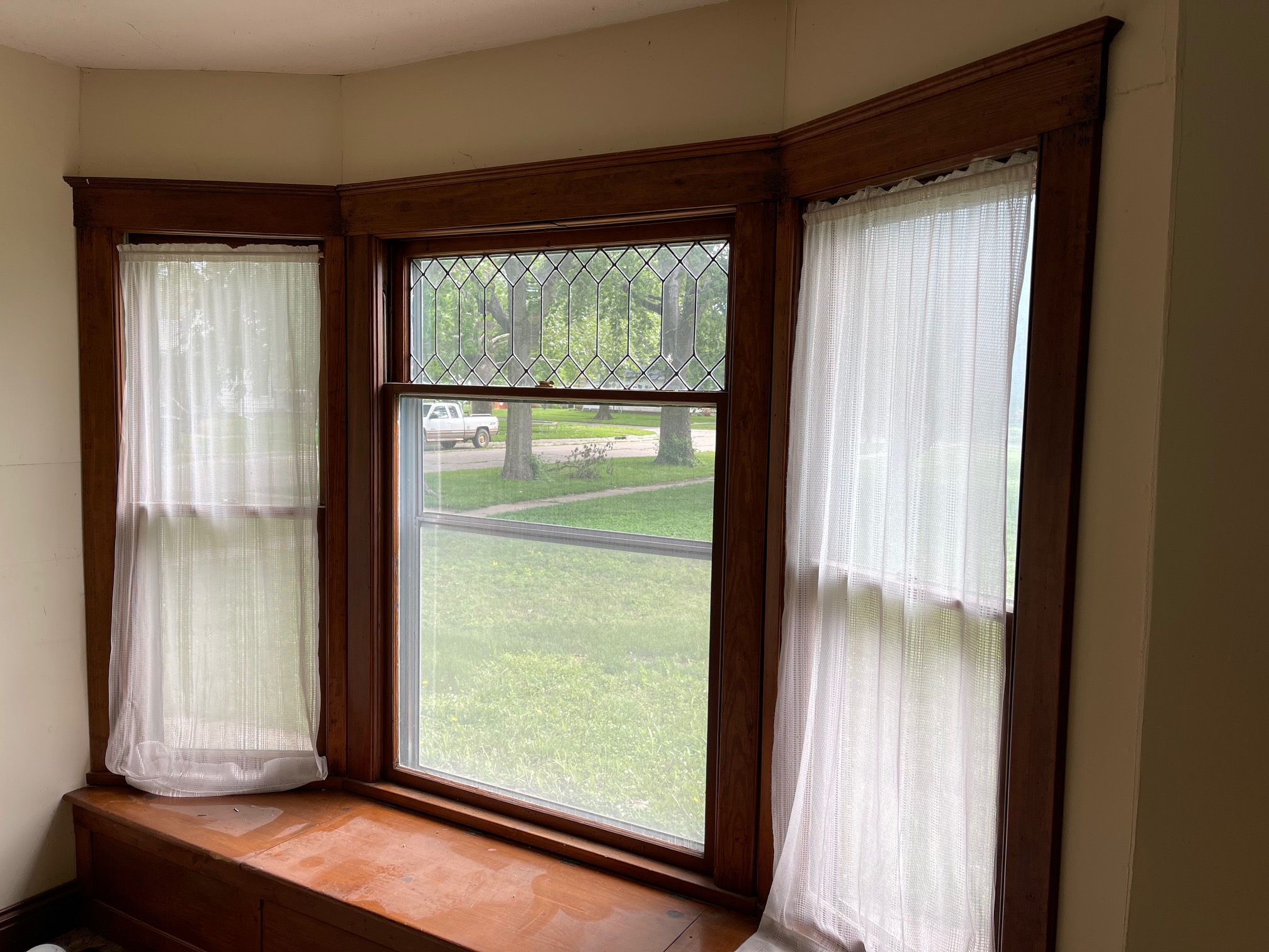 window with leaded glass and built