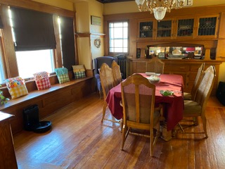 hutch, window seat and wood floors.
